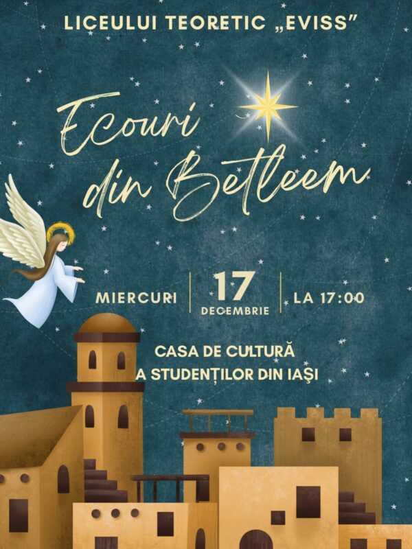 Vă invităm cu multă bucurie la Concertul susținut de elevii Liceului Teoretic „EVISS”, care va avea loc miercuri, 17 decembrie 2025, de la ora 17:00, la Casa de Cultură a Studenților (vizavi de Biblioteca Județeană „Mihai Eminescu”).